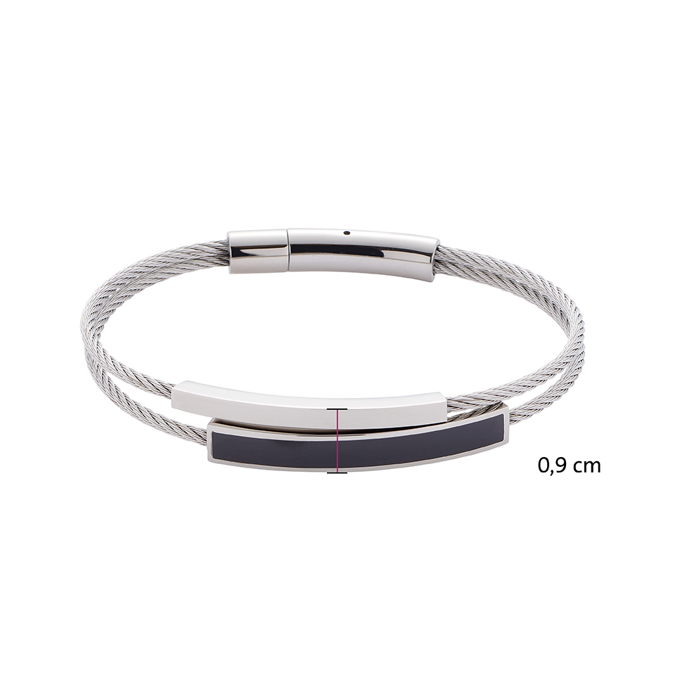 Tento velmi stylový náramek byl vyroben z leštěné chirurgické oceli v kombinaci s šedým studeným smaltem. Tato souhra působí velmi harmonickým dojmem a otevírá mnoho možností kombinování. Tento šperk na ruku se opravdu hodí například k moderním, ale také sportovním a elegantním outfitům.