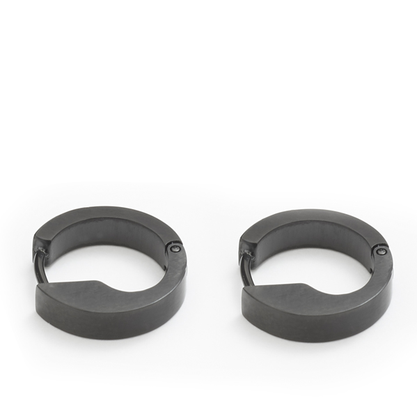 Tyto štíhlé, malé náušnice v matné černé barvě vypadají obzvlášť mladě a moderně. Jejich tmavá barva znamená, že přes svou diskrétní velikost zaujmou. Náušnice, které vypadají skvěle na mužích i na ženách.
