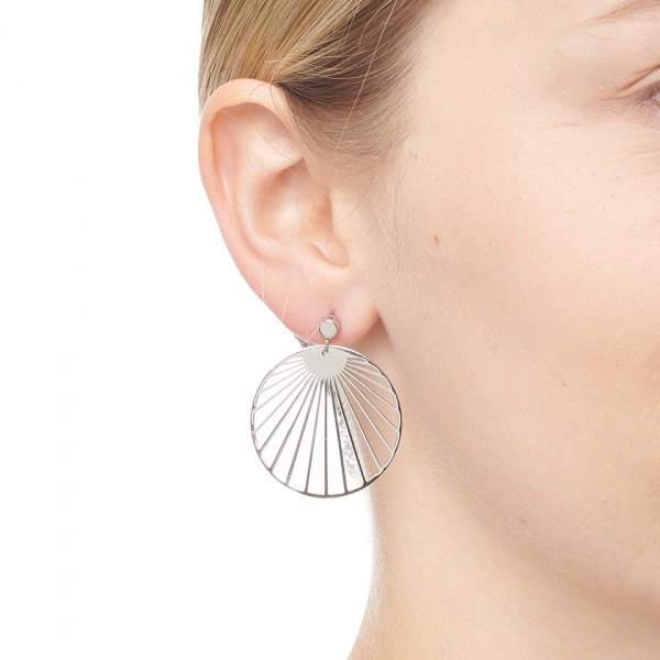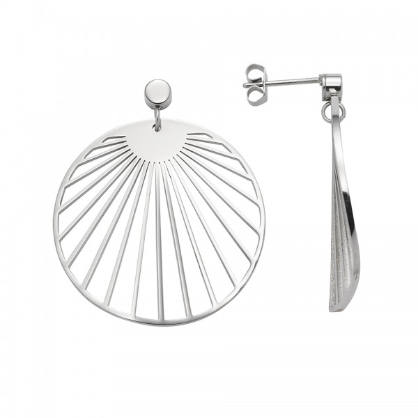 Zakřivené leštěné náušnice z chirurgické oceli. Tyto náušnice se vyznačují klasickým tvarem, který jim dodává mimořádně moderní vzhled. Jemné mírně vějířovité vzpěry způsobují, že z tohoto kousku vyzařuje velmi zvláštní kouzlo. Tyto náušnice, které jsou vyrobeny z leštěné chirurgické oceli, mají dvě části, které jim umožňují snadný pohyb.