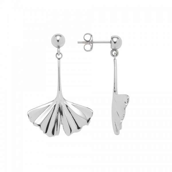 Pohybující se náušnice ve tvaru ginko. Tyto leštěné náušnice z chirurgické oceli se pohybují, a proto vytvářejí mírně hravý efekt. Motiv zobrazuje list jinanu, který představuje naději a přátelství, a proto dělá tento kousek skvělým způsobem, jak se chovat k někomu - k sobě, ke své matce nebo k dobrému příteli.