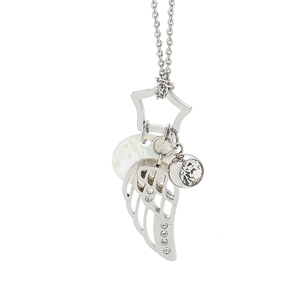 Perla, leštěná chirurgická ocel a lesklý křišťál, vytvářejí na tomto přívěsku s magnety sofistikovaný šperk. Na prvku, který má tvar malé hvězdy je připevněný další prvek připomínající andělské křídlo. "Ochráním tě" - to je slib, který byl vyrytý do perleti.